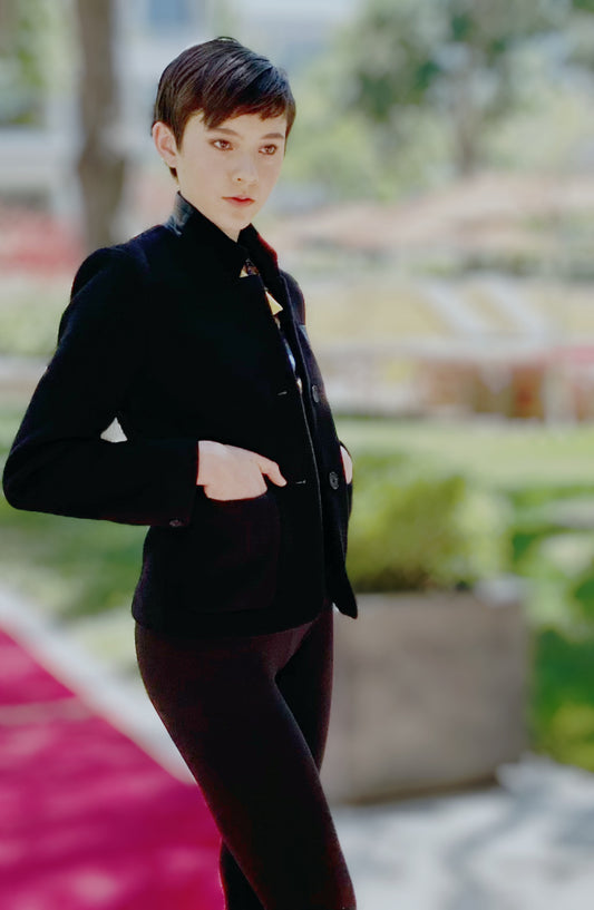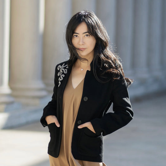 Mandarin Collar Utility Wool Blazer with Signature Embroidery