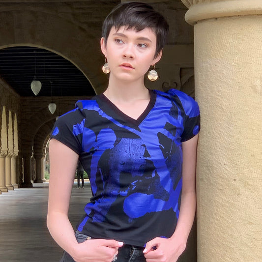 Liquid Cotton Asymmetric Collar Graphic Tee - Blue & Yellow